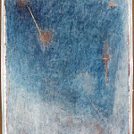 Diese Serie von Arbeiten auf Packpapier zeigt in gewissem Maße Zwitterwesen: Die Bilder gleichen in den ersten Schritten des Entstehungsprozesses den Reliquien. In Bezug auf die Zeichenhaftigkeit wiederum ähneln sie den „Nachtaugen“ – mit einem gravierenden Unterschied: Hier fehlt das Spiel mit der Kombinatorik, die linearen Zeichen reduzieren sich auf ein Mindestmaß.