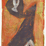 In den Jahren ab 1985 Auseinandersetzung mit experimentellen Mischtechniken, einer Verquickung von Druck und Malerei. Übereinander gelagerte Farbmonotypieschichten werden mit minimalen malerischen Eingriffen ergänzt. Der Bildtitel "Reliquie" mit fortlaufender Nummerierung weist eher auf den Entstehungsprozess der Arbeiten hin als auf die inhaltliche Definition des einzelnen Bildes. Auf dem Bildträger konkretisierten sich Formen Schicht für Schicht.